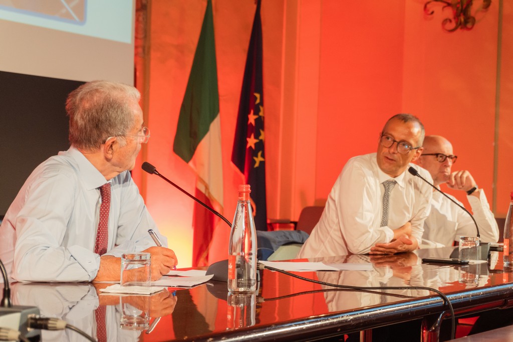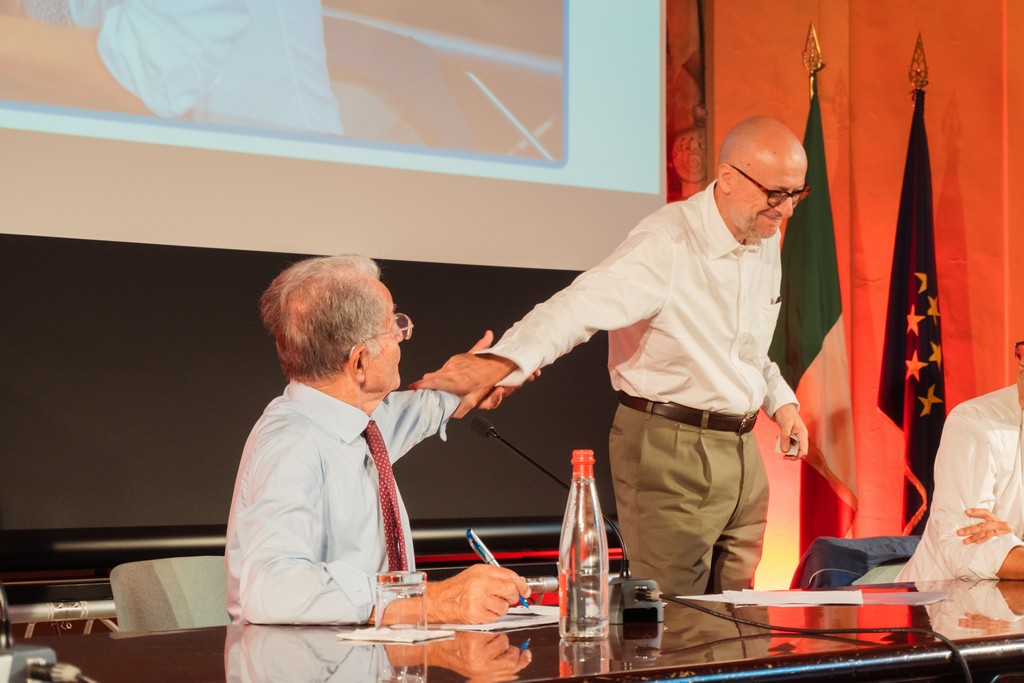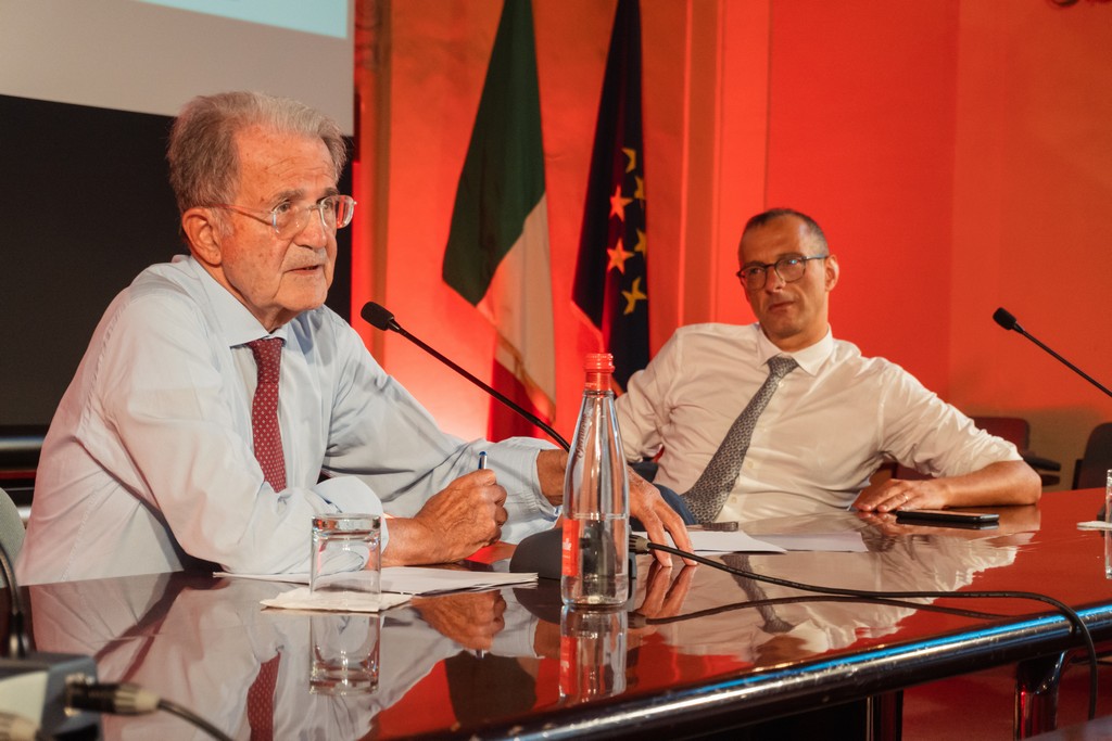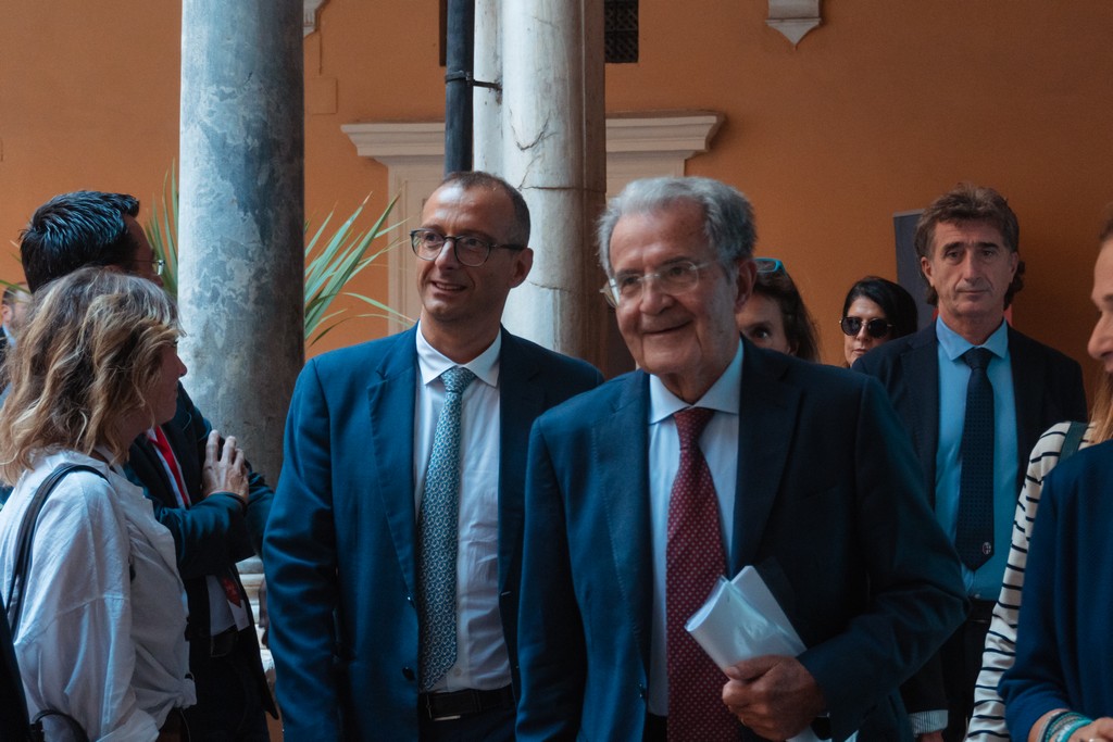 L’ospite più atteso dell’ultimo giorno della quinta edizione del Festival delle Città 2023, kermesse intitolata “Sortirne insieme”, in occasione del centenario di Don Lorenzo Milani, che si tiene nella sempre affascinante piazza San Salvatore in Lauro, presso il Pio Sodalizio dei Piceni a Roma, è stato il professor Romano Prodi che, affiancato dal presidente ALI, Matteo Ricci, ha affascinato la platea con una profonda riflessione sullo stato dell’Unione Europea.