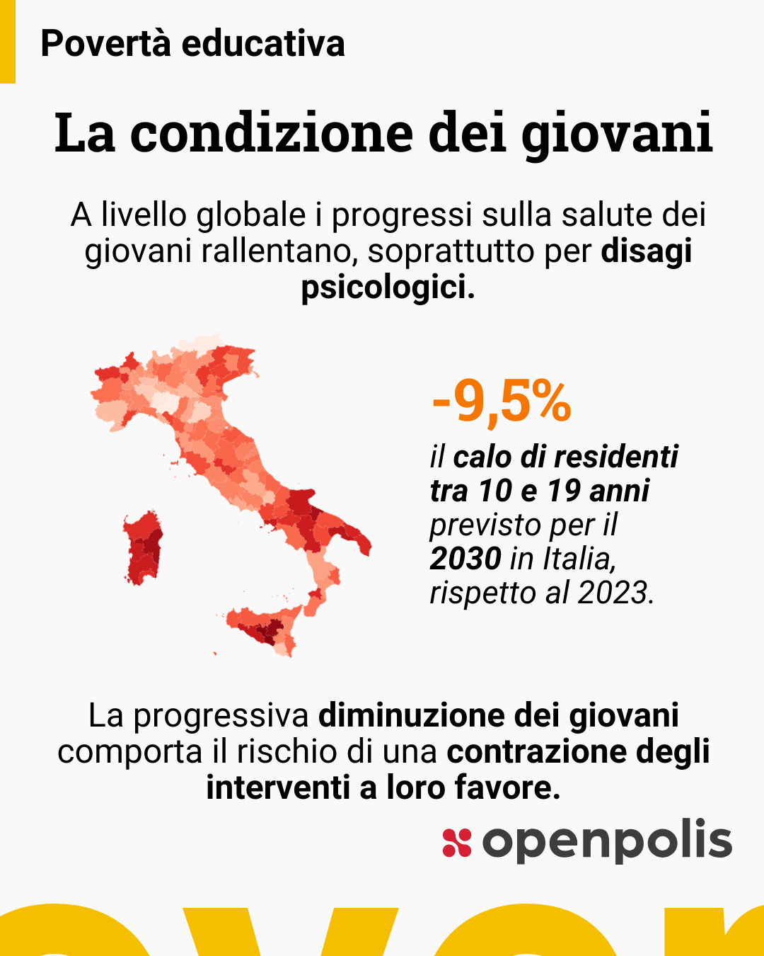 Dopo il Covid, la situazione dei più giovani presenta luci e ombre: segnali di peggioramento ma anche di rinnovato impegno. Un investimento su questa fascia d’età è cruciale, ma la dinamica demografica rischia di allontanare l’attenzione dalla loro condizione.